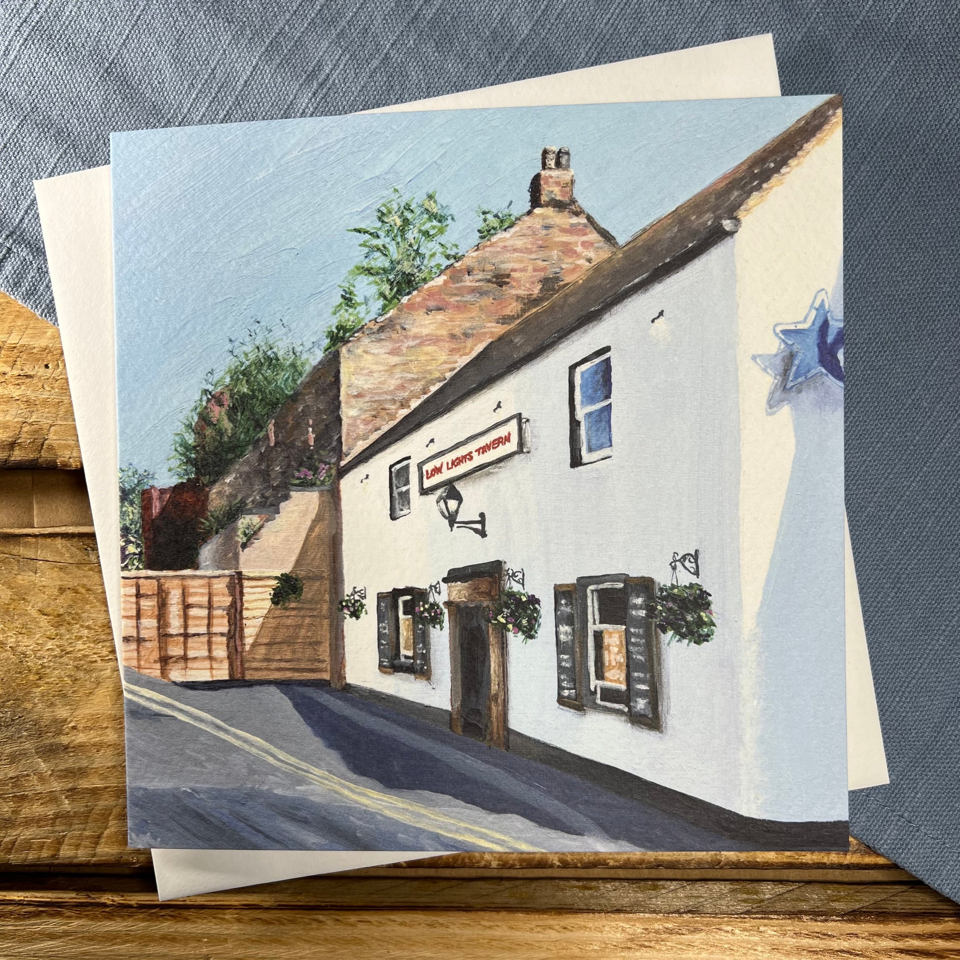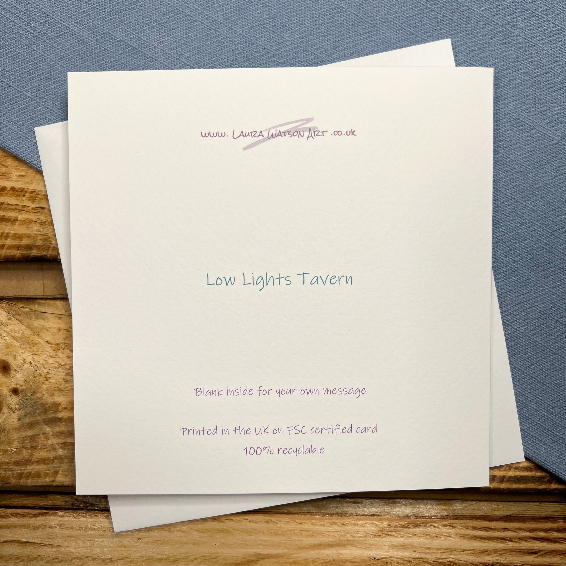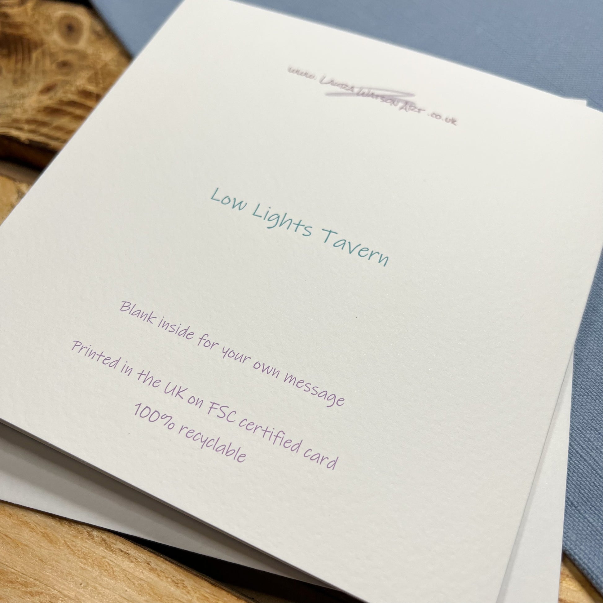 Blank greetings card of the Low Lights Tavern in North Shields - perfect for sending to any Sam Fender fans you might know! This historic pub on North Shields Fish Quay is famous for being the place where the Geordie singer was discovered. The design is taken from one of my original acrylic paintings.