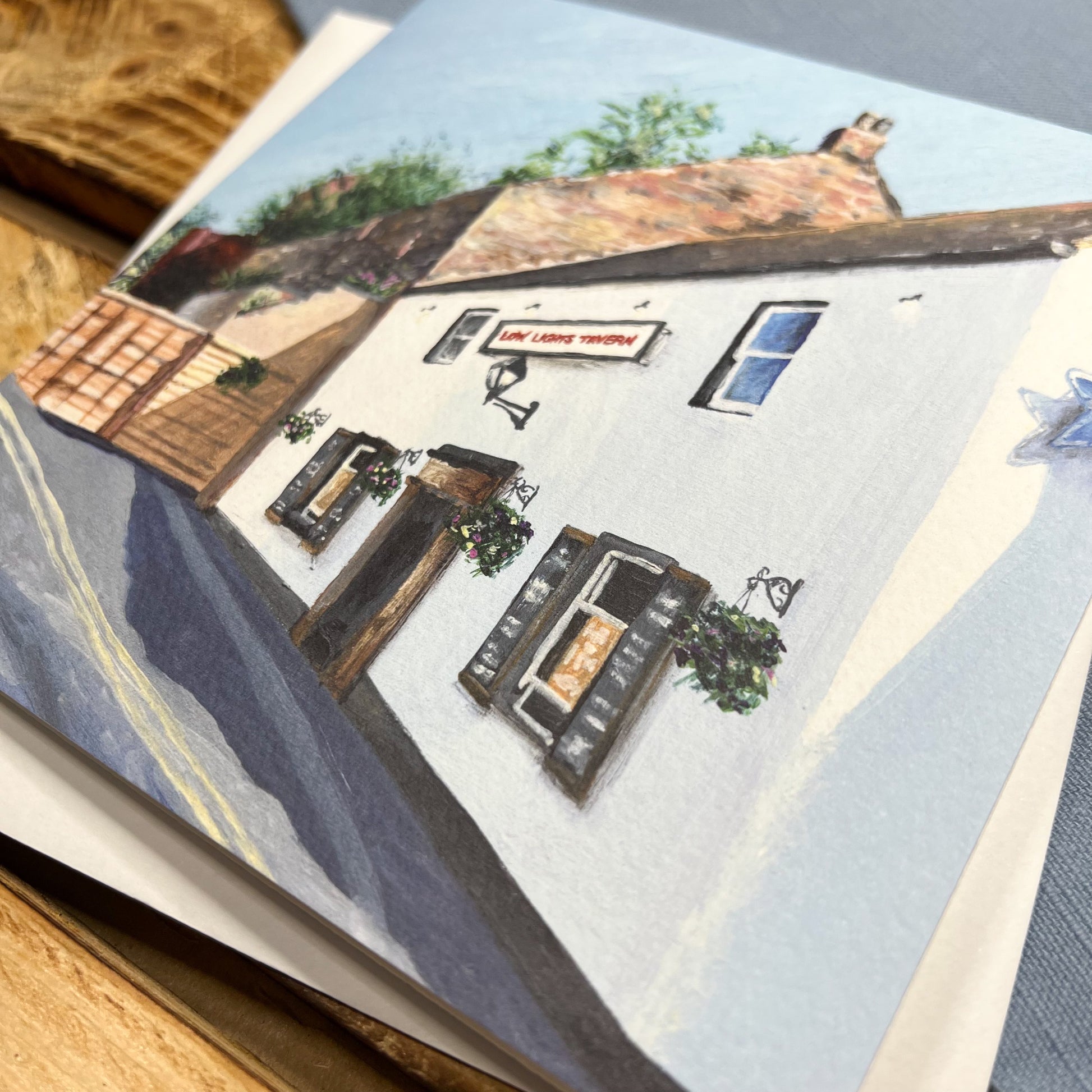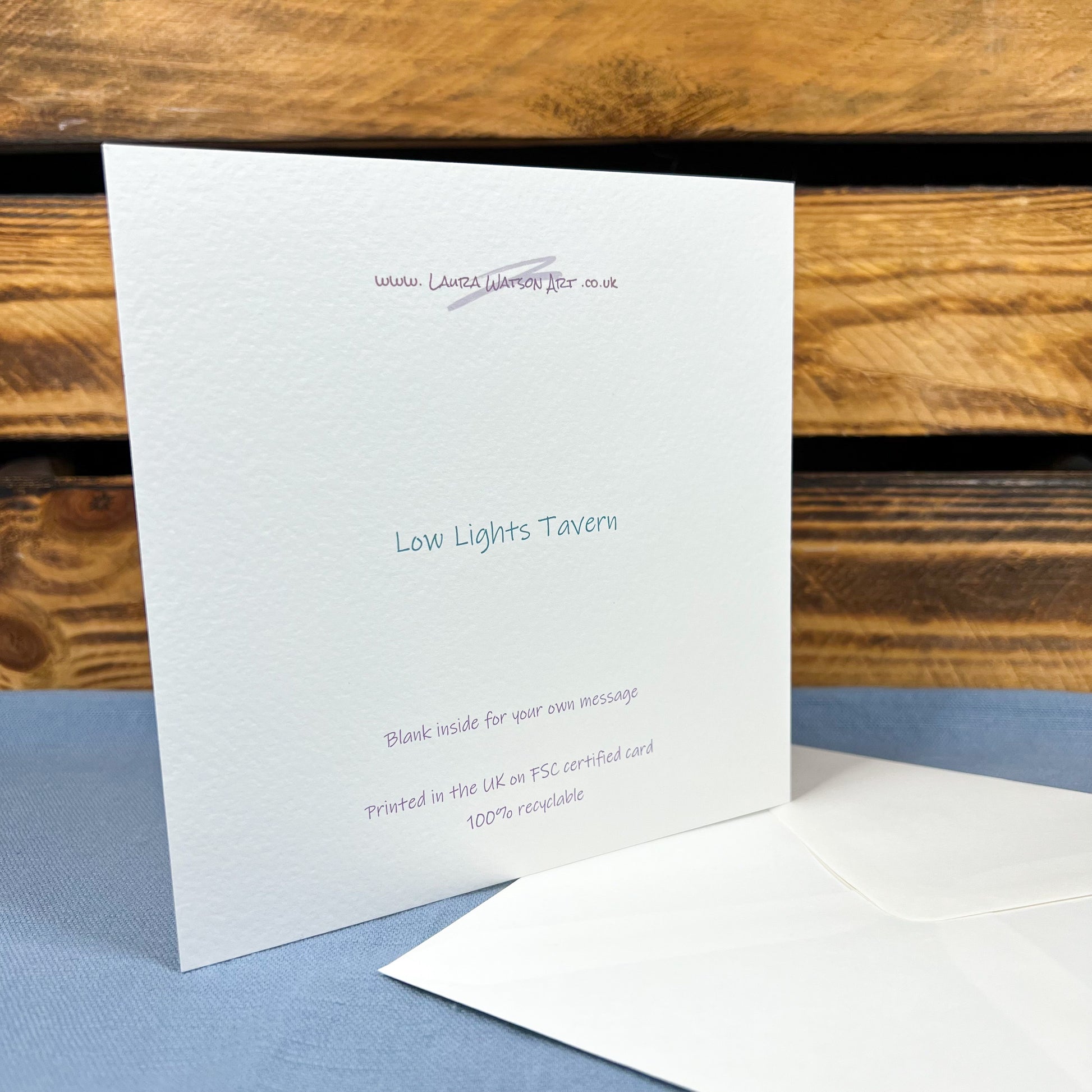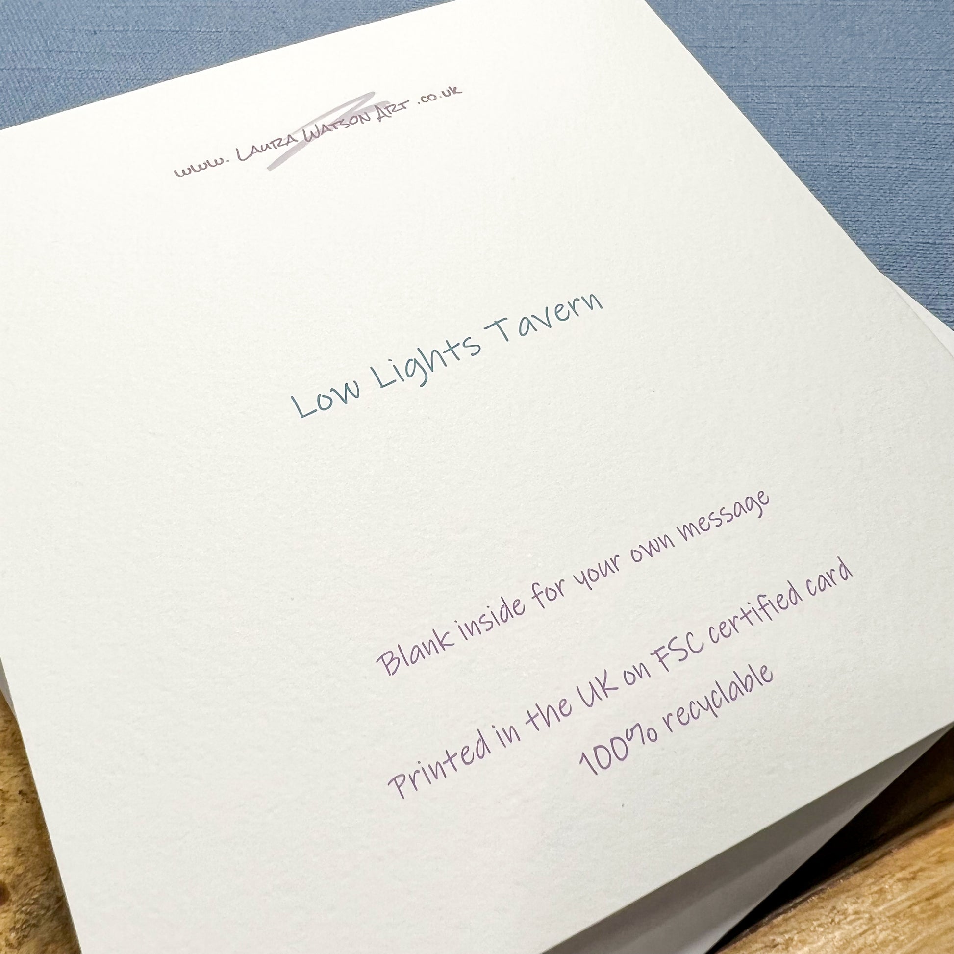 Blank greetings card of the Low Lights Tavern in North Shields - perfect for sending to any Sam Fender fans you might know! This historic pub on North Shields Fish Quay is famous for being the place where the Geordie singer was discovered. The design is taken from one of my original acrylic paintings.