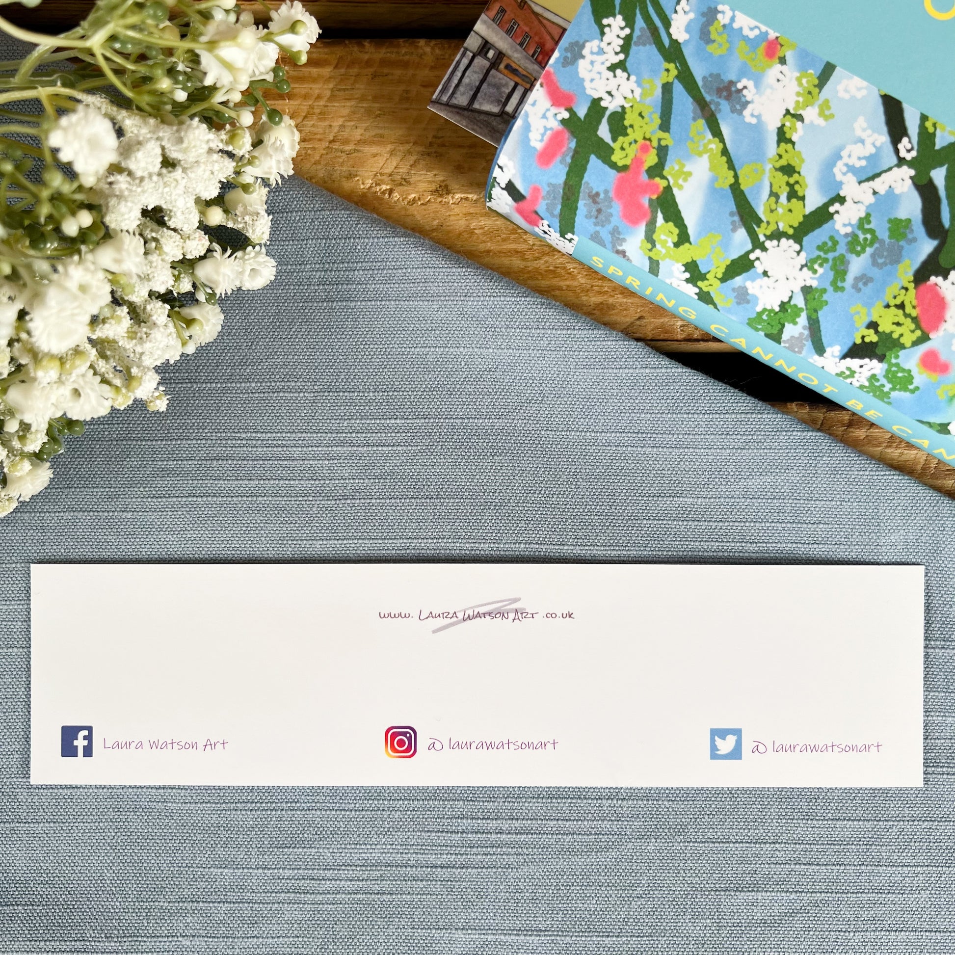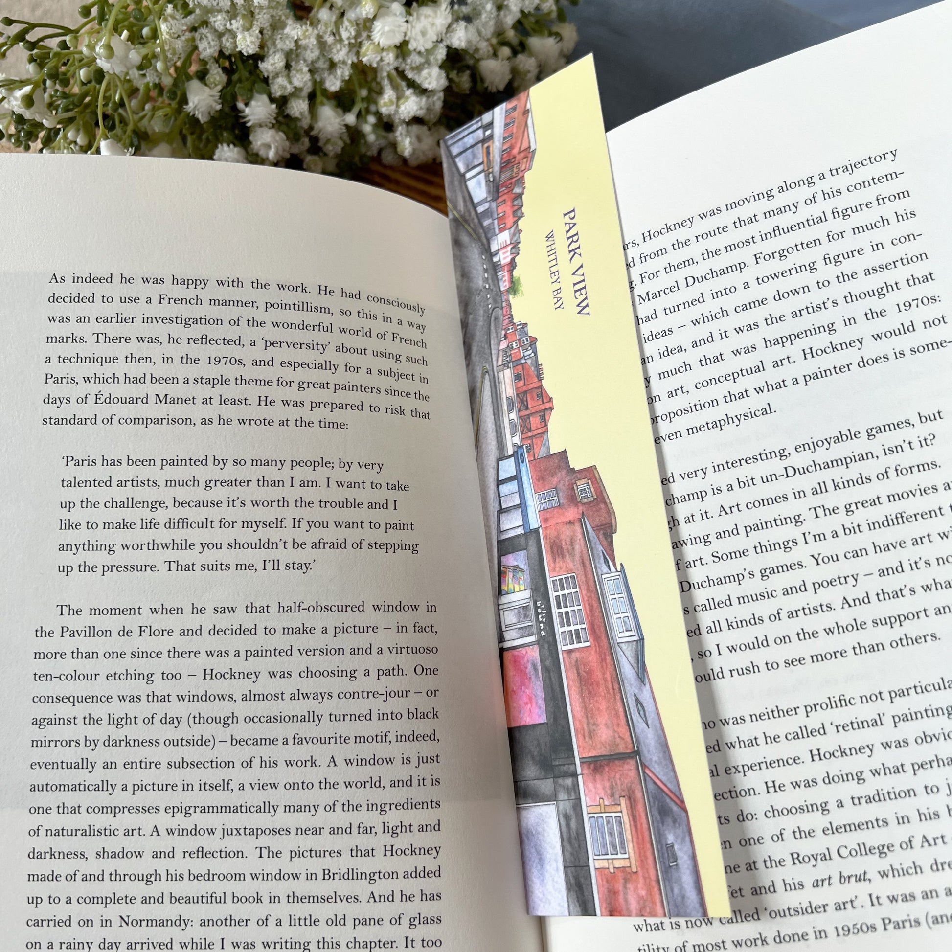 A beautiful bookmark featuring a watercolour painting of Whitley Bay's famous Park View. Can you spot the bound bookshop in the foreground?