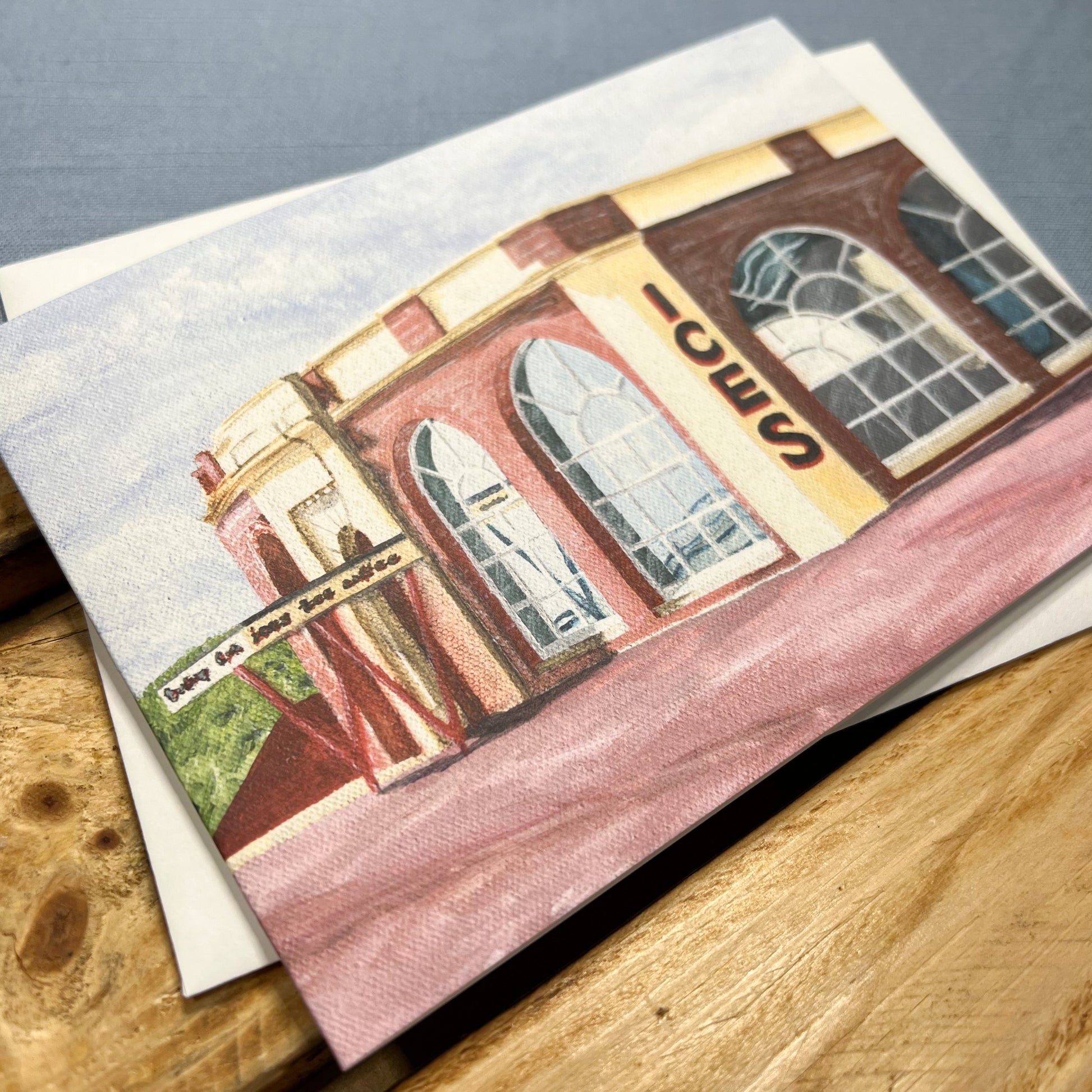Blank greetings card of the iconic Rendezvous Cafe, Whitley Bay. This incredibly popular destination is one of the North East's most recognisable landmarks, so this card is perfect for sending to friends and loved ones who have a connection to the Whitley Bay area. The image has been taken from one of my original acrylic paintings.