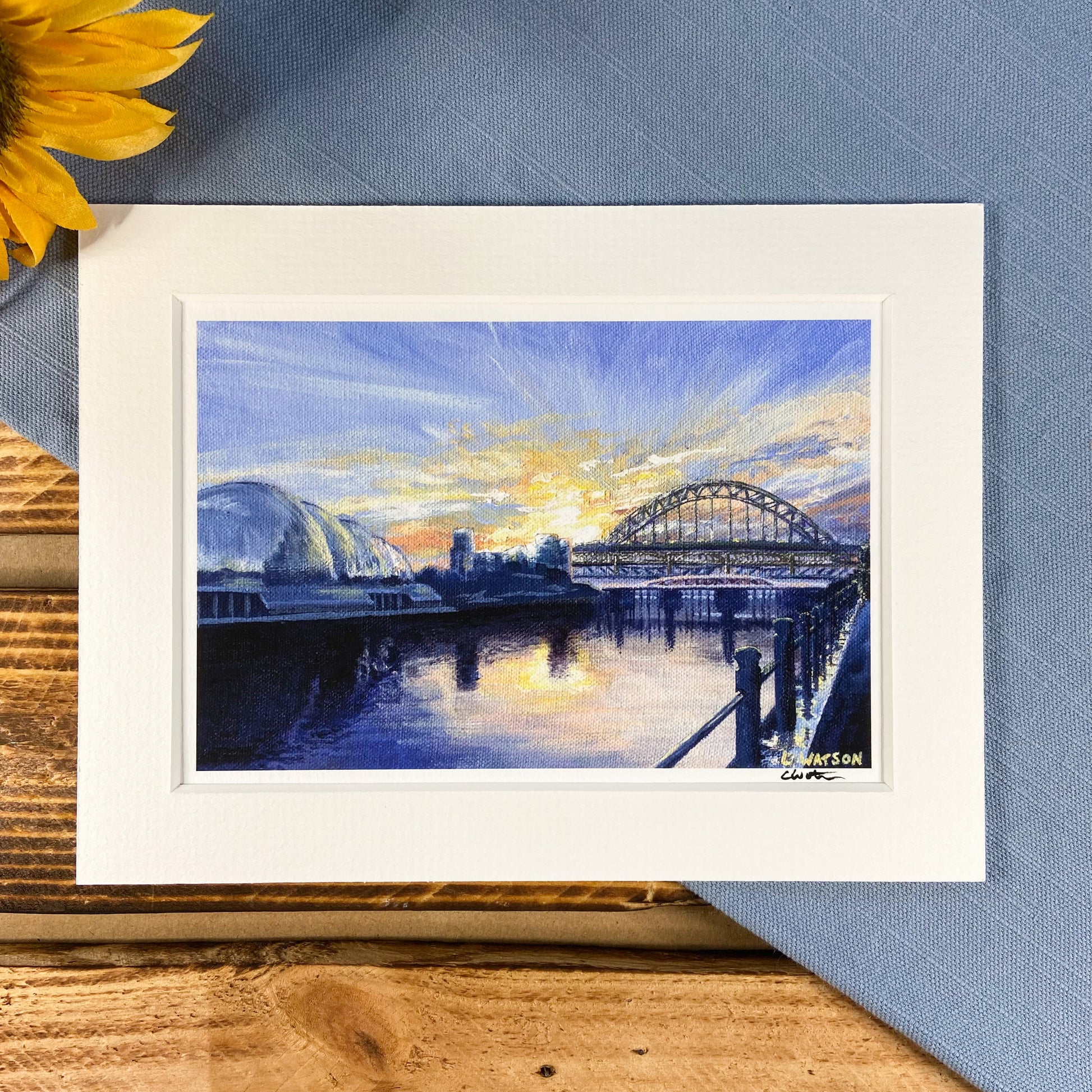 Giclee print of the River Tyne, featuring The Sage Gateshead and some of Newcastle's famous bridges. Printed on top quality 310gsm art paper using Epson pigment inks, meaning the colours will stay true for years. Each print is individually signed.