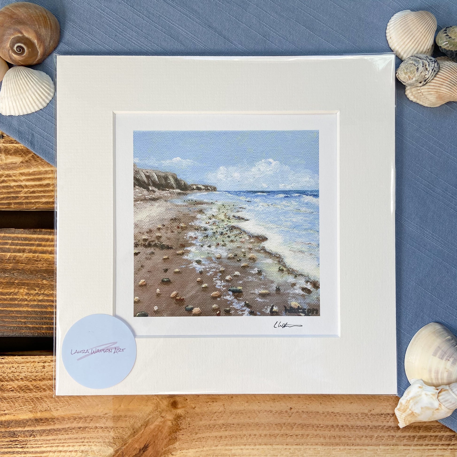 14" x 14" giclee print of Seaham Beach, taken from my original acrylic painting of the same name. Seaham beach is famous for its supply of sea glass, and is an incredibly popular destination for sea glass hunters! It's only a stone's throw away from the beautiful spa resort of Seaham Hall, so this could be the perfect gift if you're looking for a reminder of this special place to send to friends or family. This product is printed on top quality 310gsm art paper using Epson pigment inks, meaning the colours will stay true for years. This print is hand signed.
