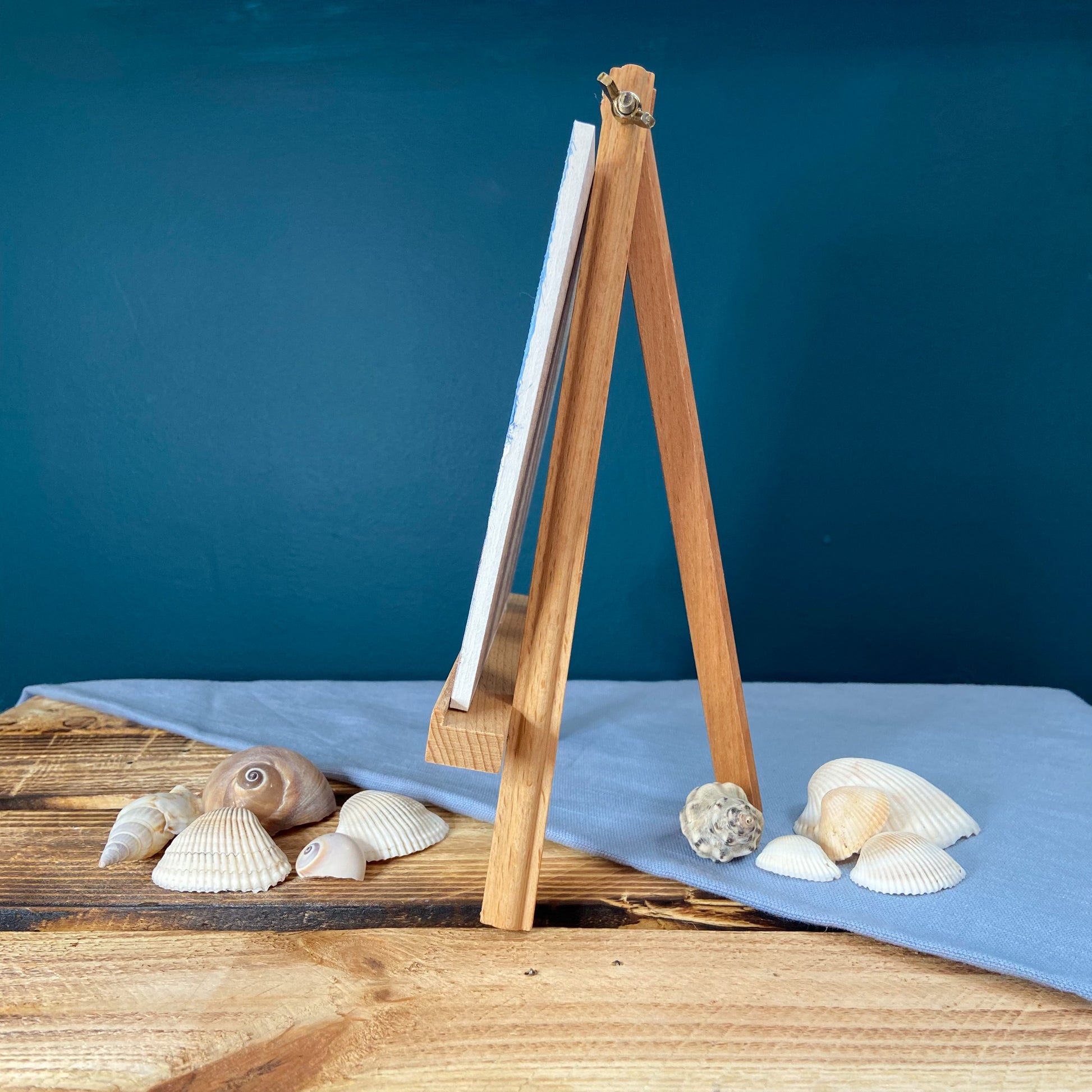 Display easel included in price - measures 25cm x 18cm, with an adjustable back leg (minimum depth approx. 11cm; maximum depth approx. 38cm).