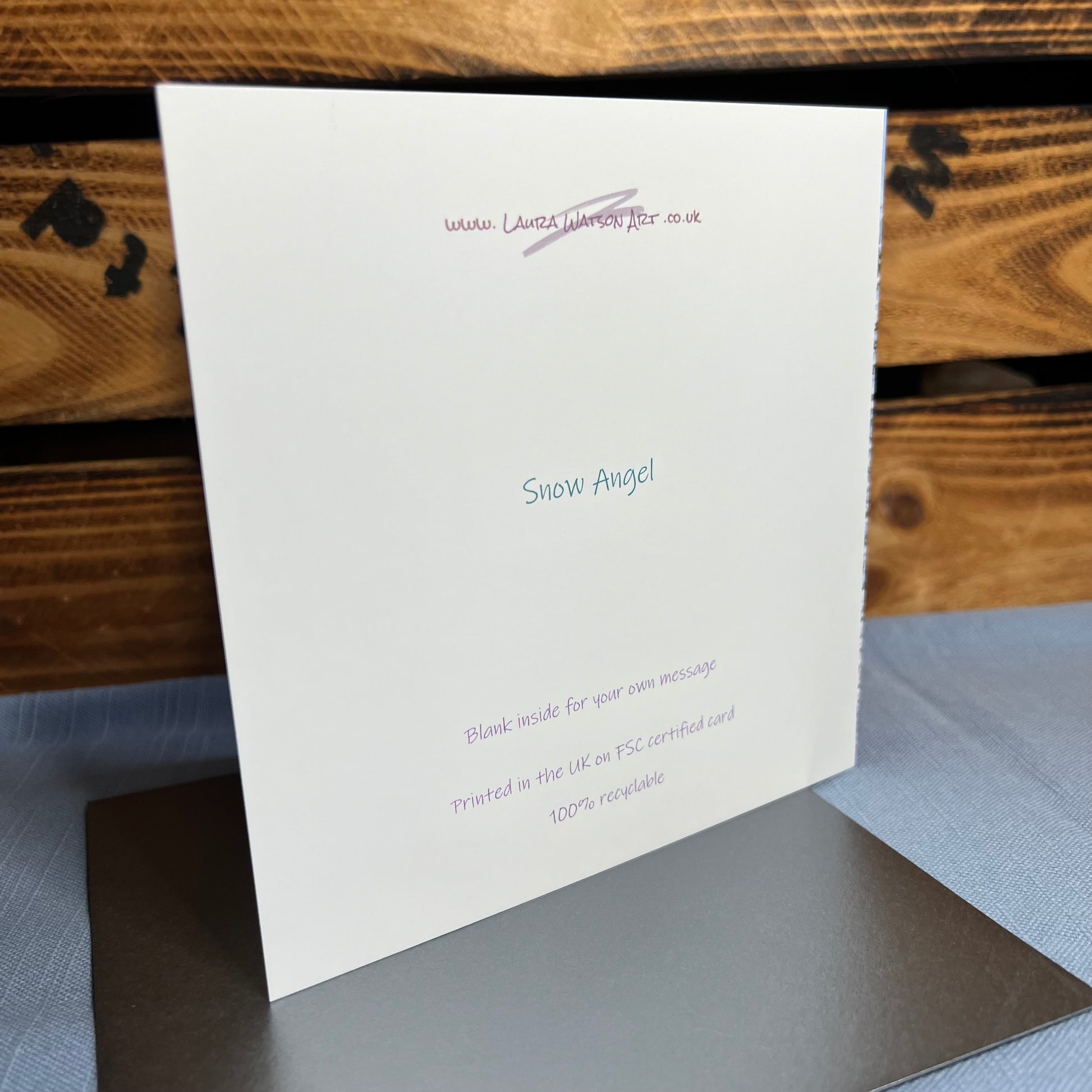 Square Christmas card of the Angel of the North set against the snow. The image is taken from one of my original paintings.