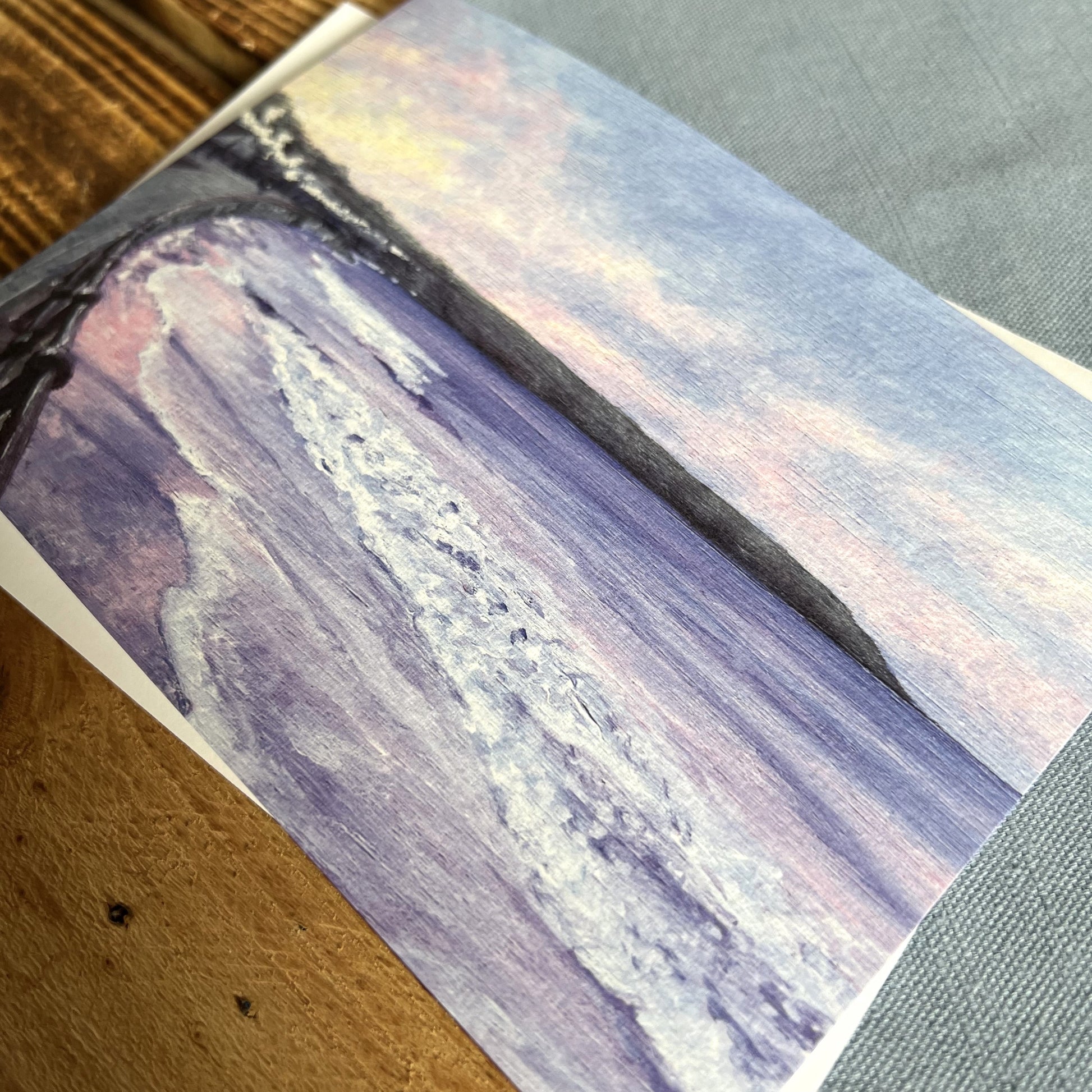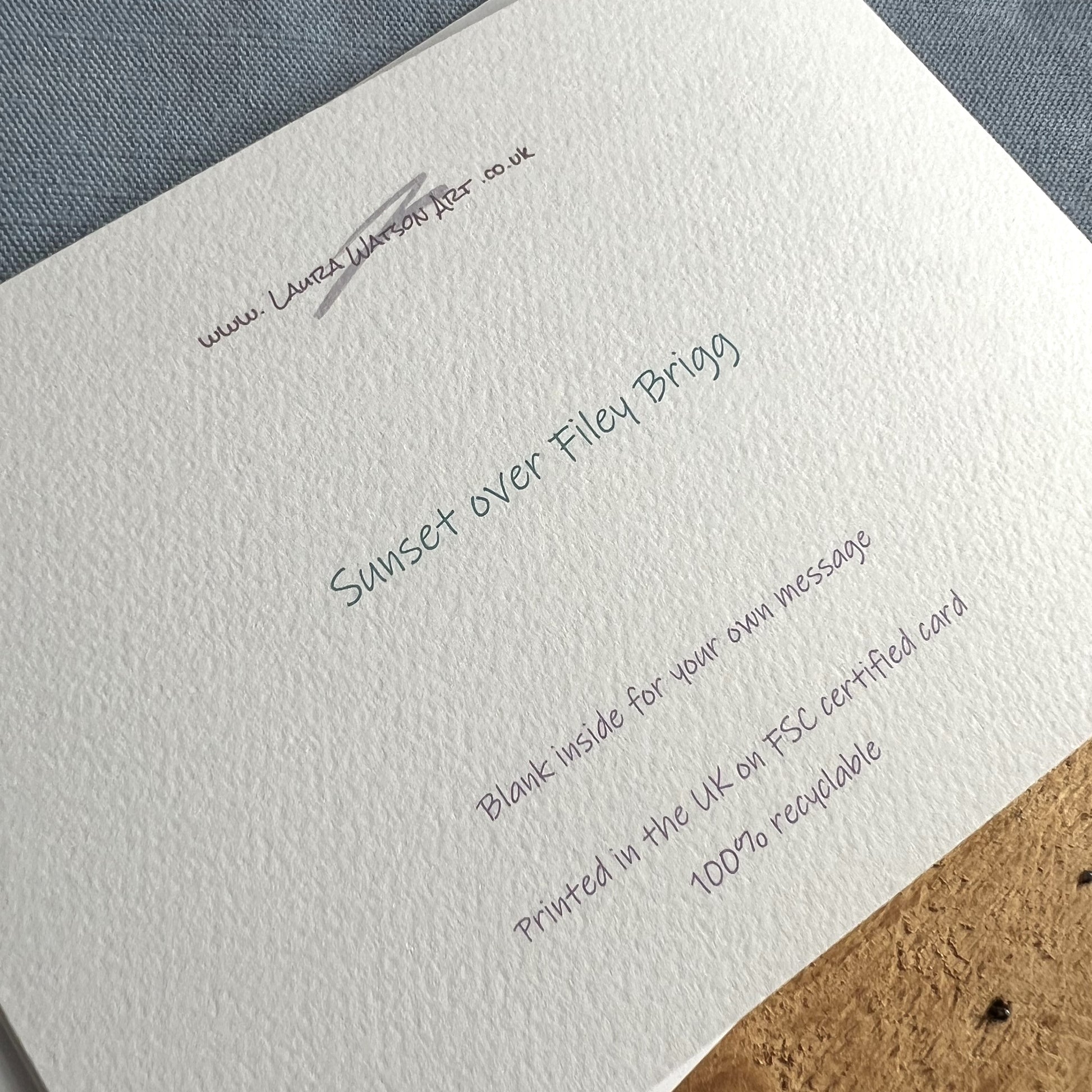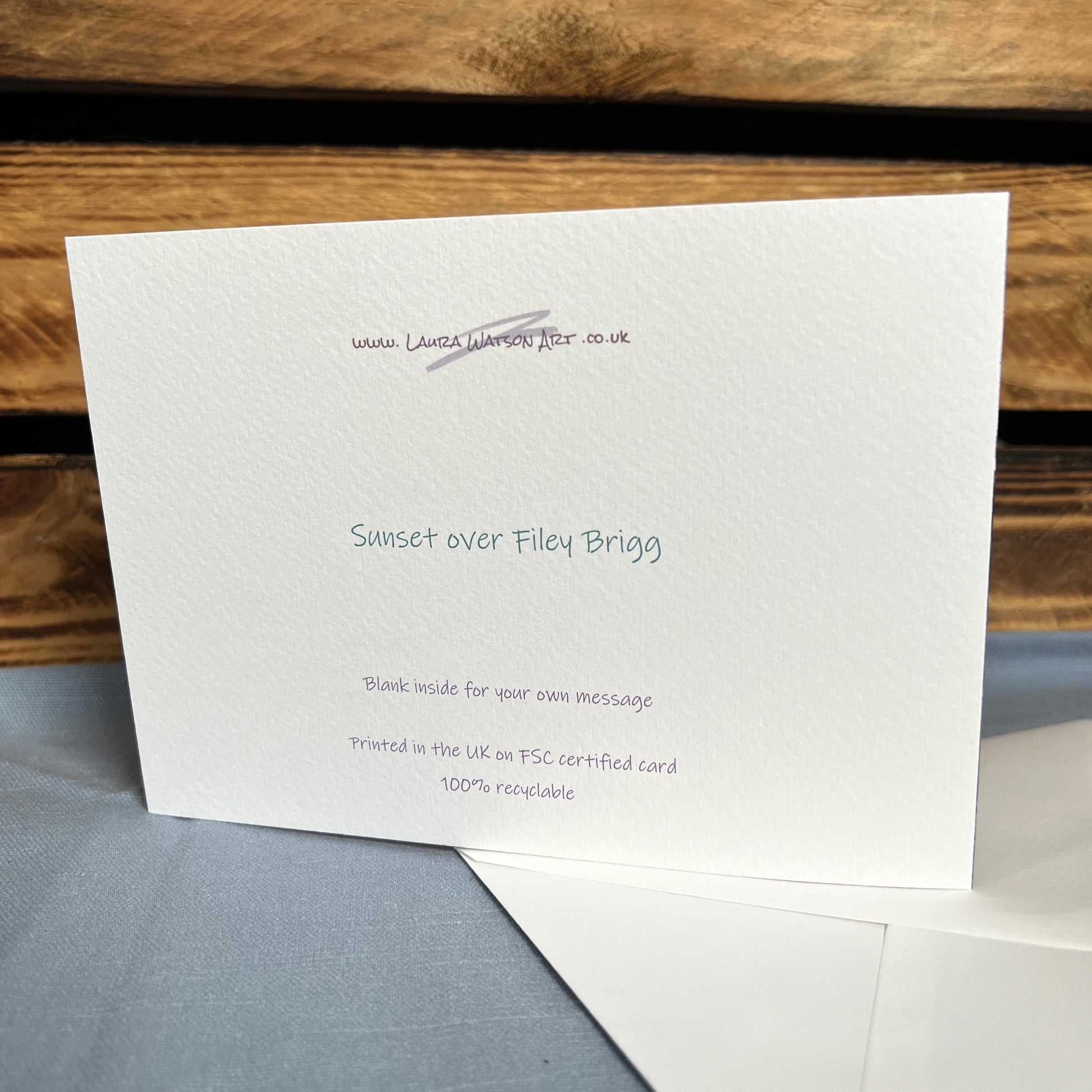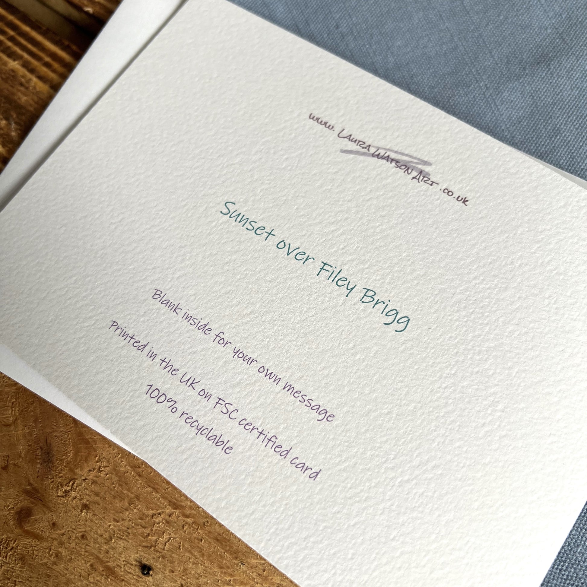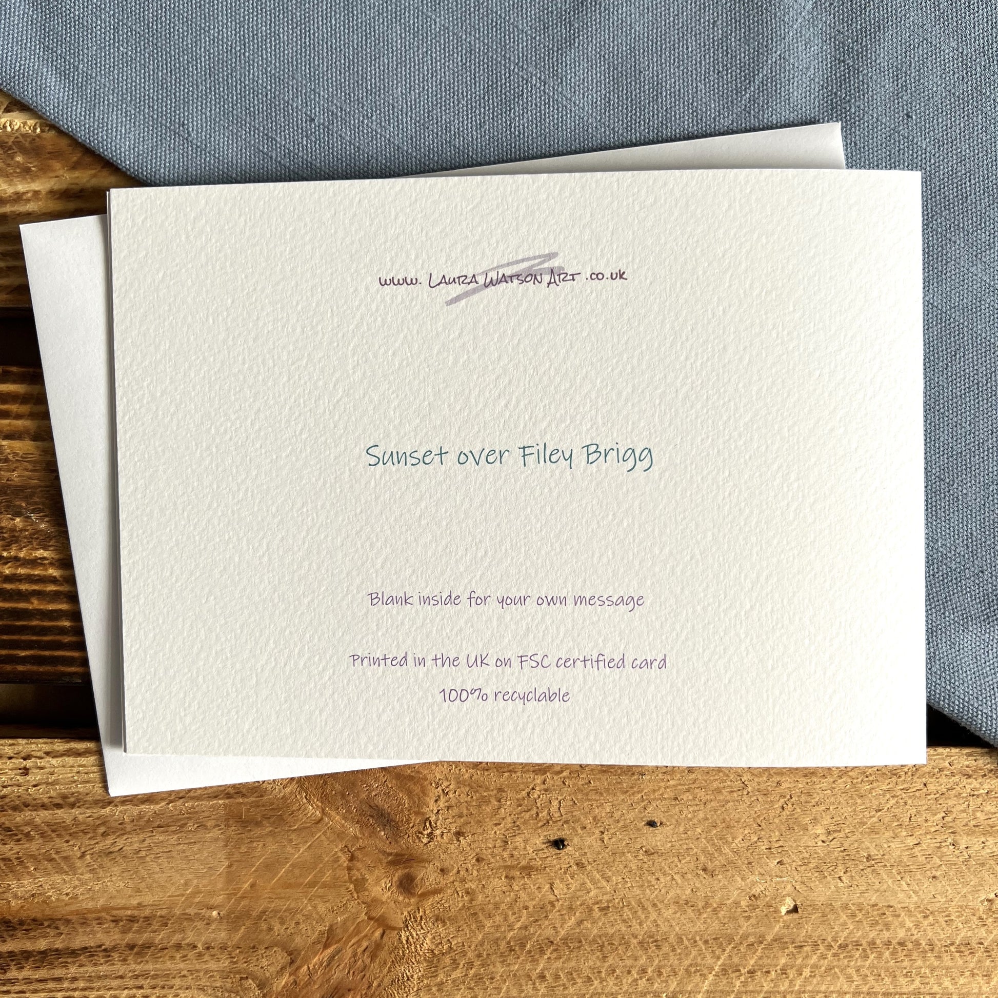 Greetings card of a peaceful sunset scene over Filey Brigg, taken from one of my original acrylic paintings. This image is also available as a mounted giclee print - see my shop listings for details.